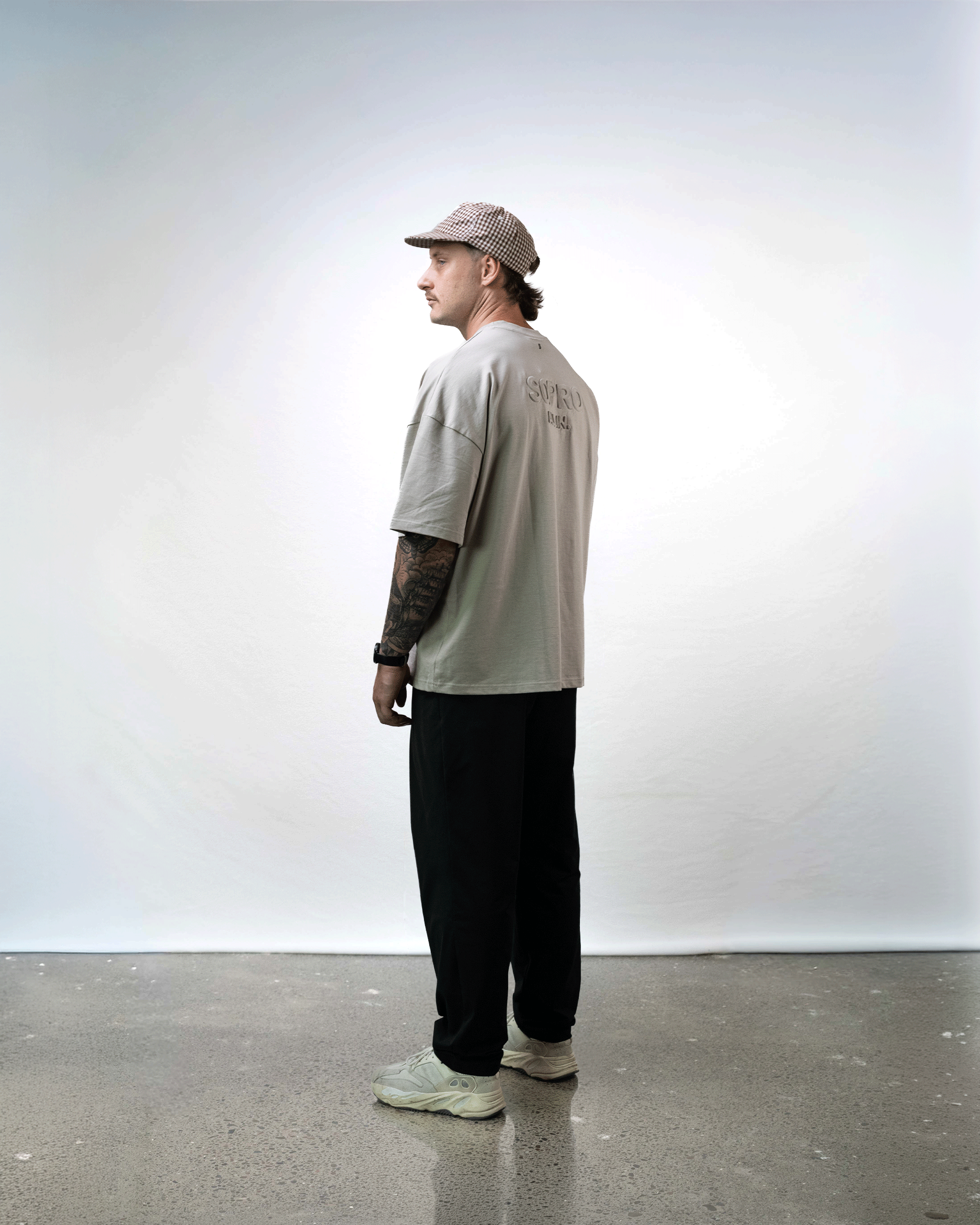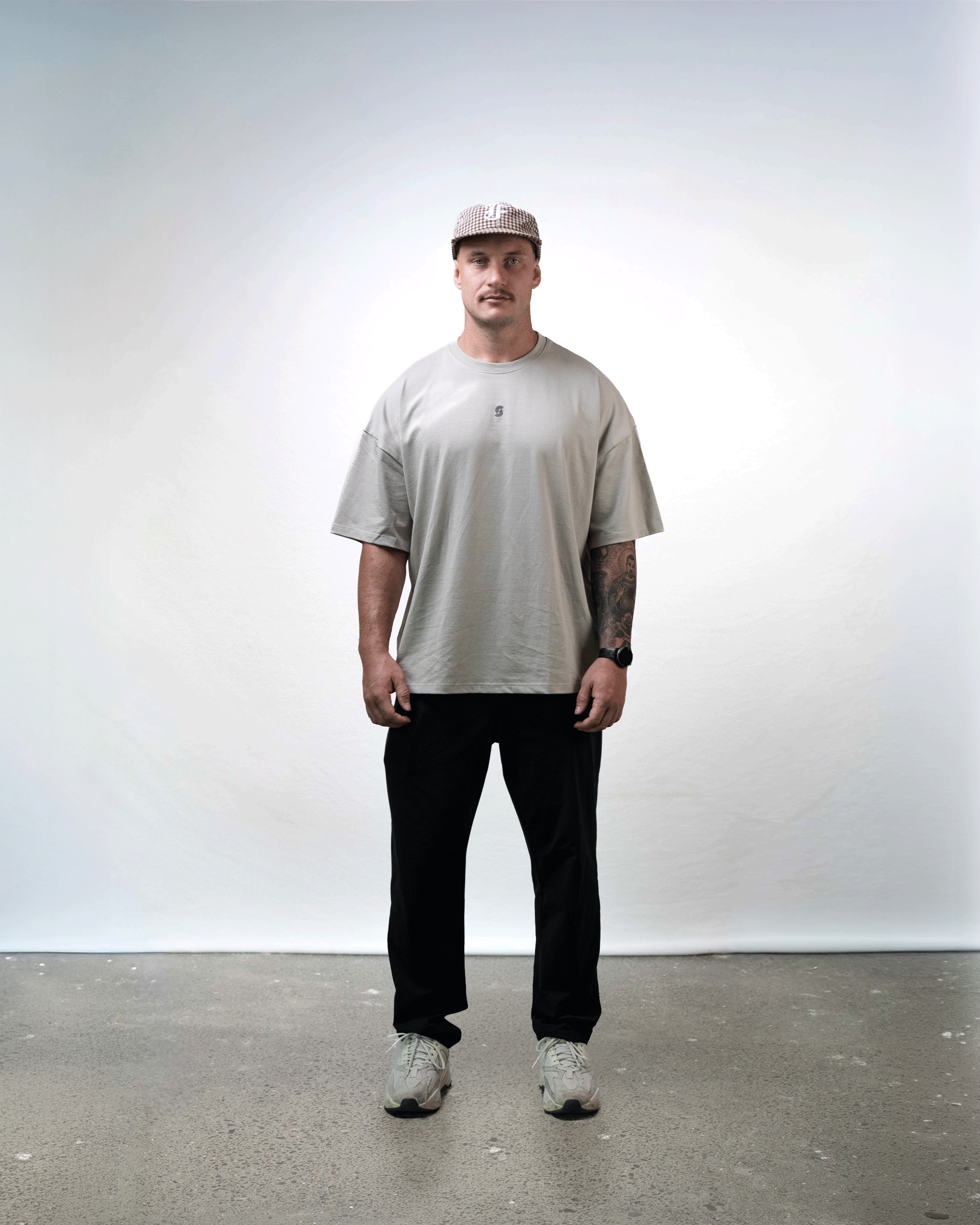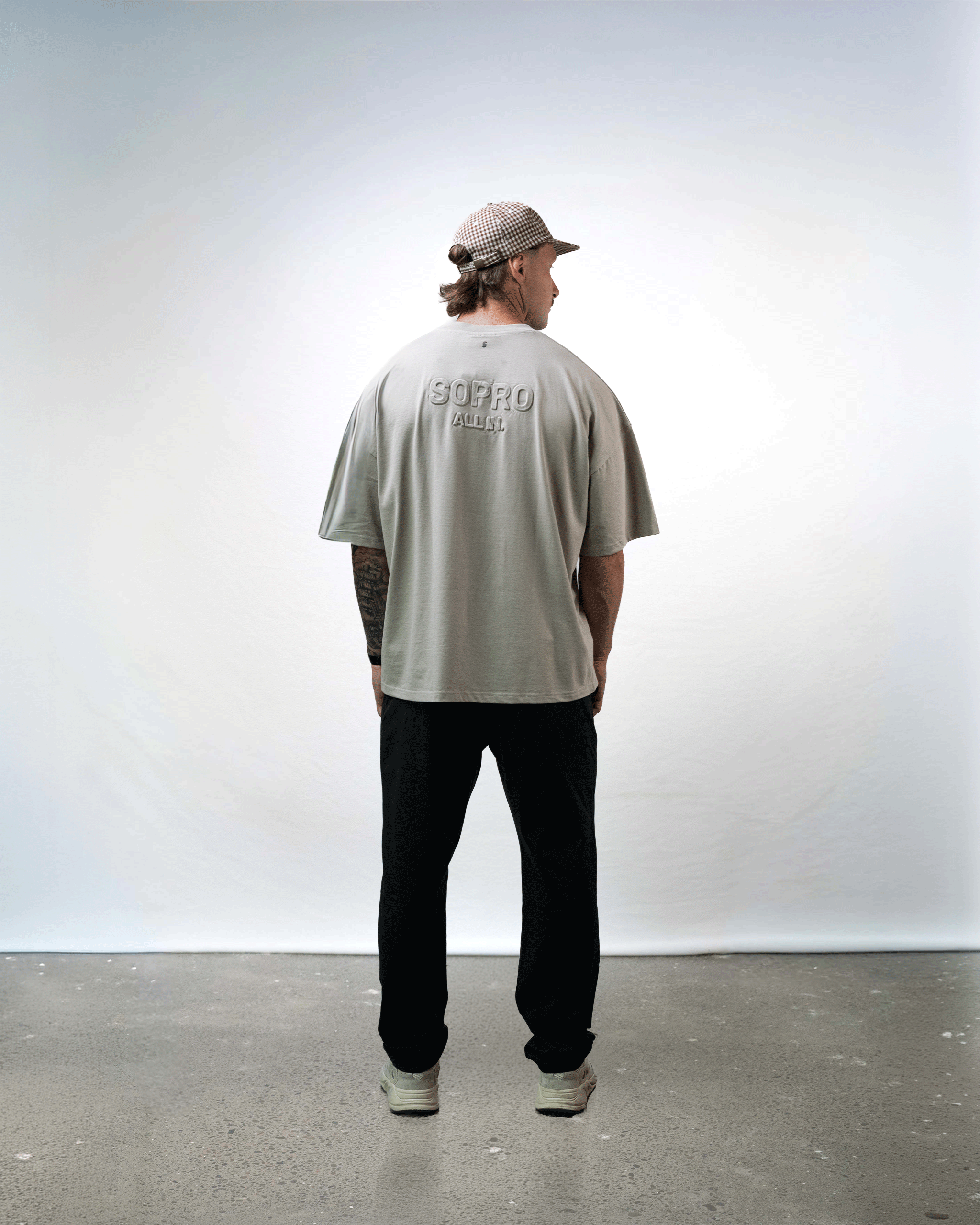 Crafted from premium 240gsm 100% cotton, the Greige “All In” Tee delivers the same structured weight as the rest of the collection, finished with a clean, natural cotton feel.